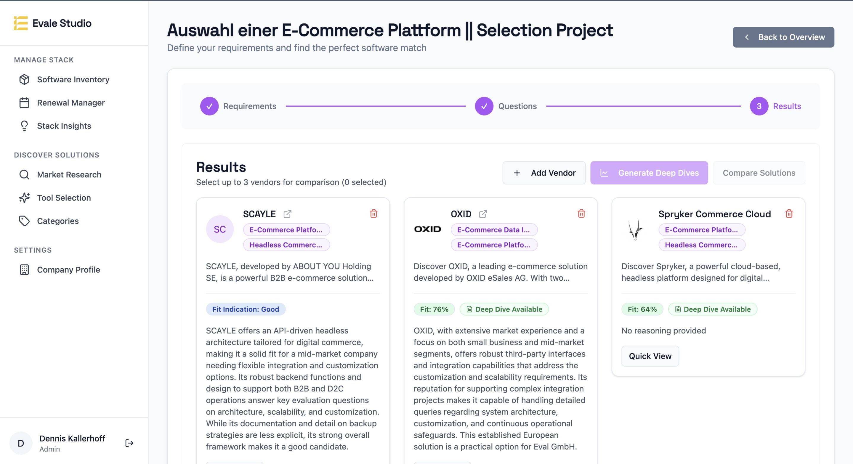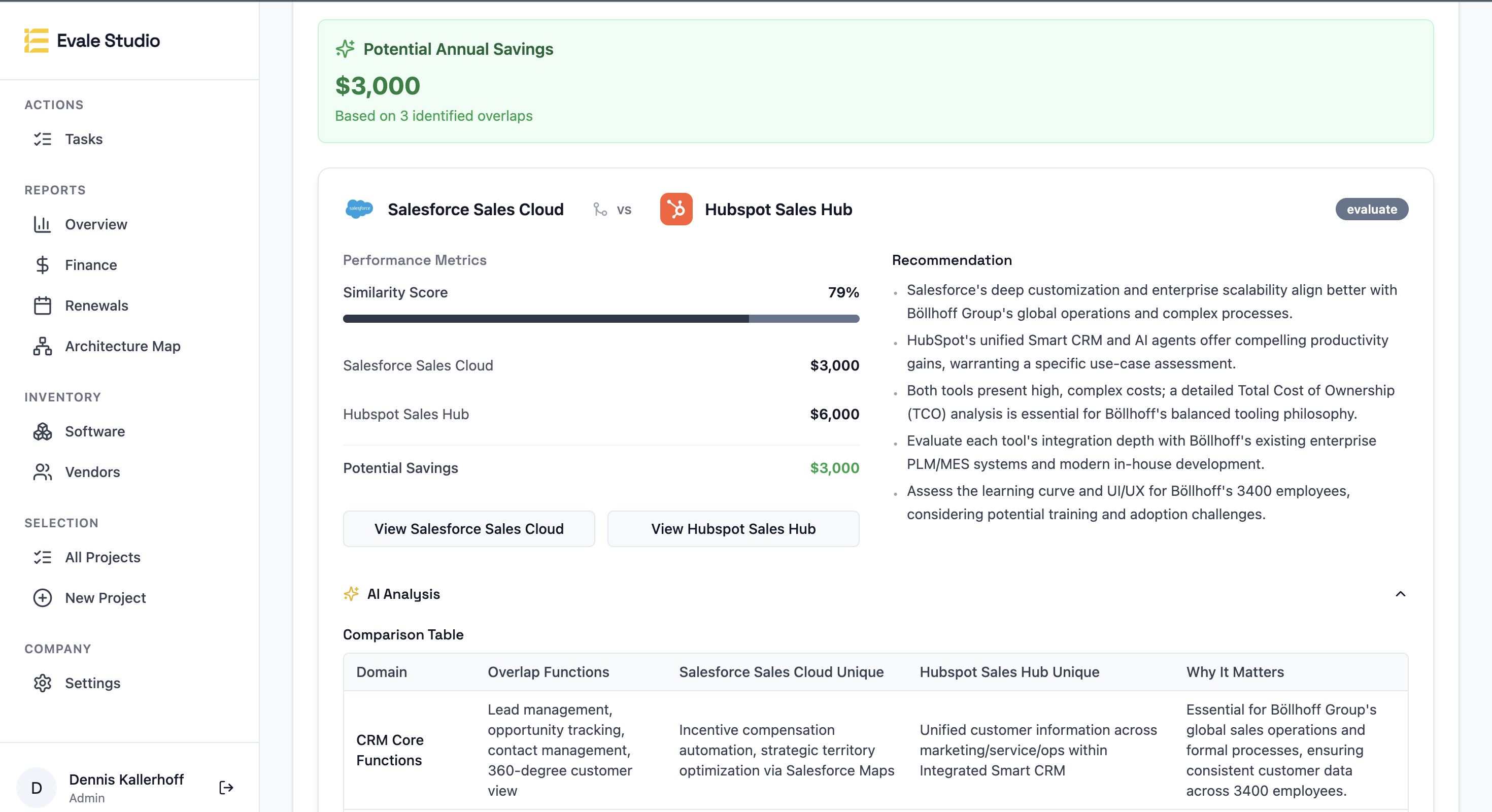 Evale is excellent at providing a quick yet insightful market overview, enabling tool decisions 1–2 months faster. The negotiation proposals can save substantial amounts of money — a valuable added benefit.